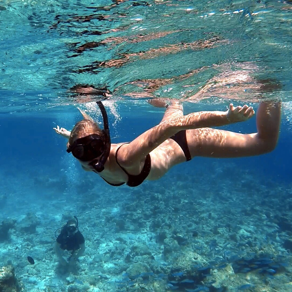 - Hoppe direkte i havet fra bådens dæk og snorkle blandt farverige koralrev